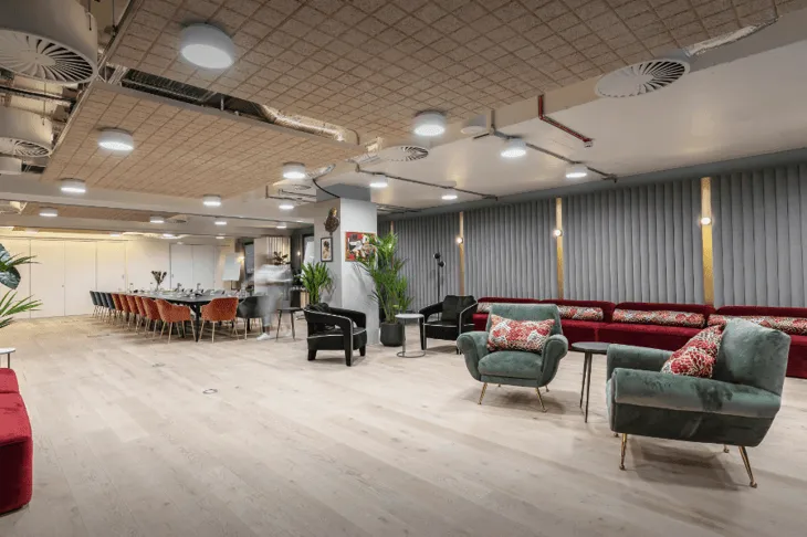 Summary: Serviced offices in Soho occupy this modern building, which provides FURNISHED OFFICE accommodation, a professional BOARDROOM and comfortable LOUNGE AREAS which are ideal for relaxing during work hours or hosting informal meetings and collaborative working. Office Description: These flexible workspaces enjoy high-speed internet access and dedicated phone lines, high-end furnishings throughout and luxurious kitchen and boardroom facilities so that tenants can enjoy everything they need for business all under one roof. Private offices are available, as well as a "pro-working" area where companies are able to work collaboratively with others in a more vibrant and exciting environment. Location Description: This strategic location is right at the heart of Soho, offering easy access to many of the city's best bars, shops and restaurants. Vibrant Carnaby Street is mere moment's away, and the area is easily accessible by road and public transport, with Oxford Circus, Piccadilly Circus and Tottenham Court Road underground stations just a short walk away. Many of the city's best businesses are nearby, offering ideal networking opportunities.